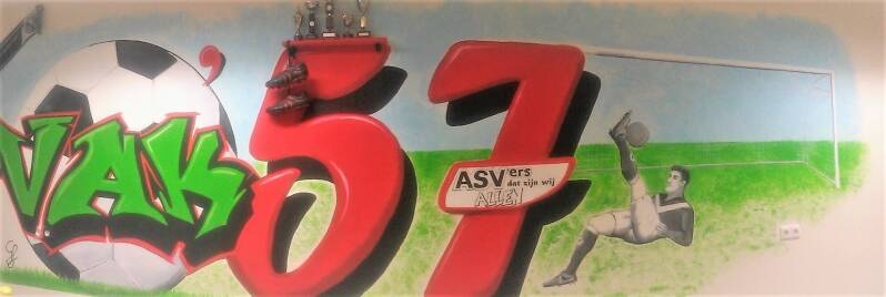 De Aadorpse voetbalvereniging heeft me gevraagd om in het jeugdhonk een muurschildering te maken die de jeugd aanspreekt. De muur van 7 x 2 m. mocht vrolijke kleuren krijgen en we besloten om het een graffiti look te geven met 3 D effecten.